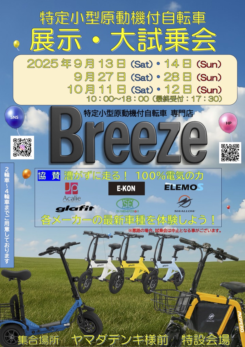 販売店「Breeze」が「ニトリモール相模原店」にて展示・大試乗会を開催します。