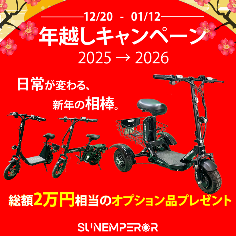 2025年12月20日(土)~2026年1月12日(月)の期間、特定小型原付”SS1””Easy””SUNRIN”を対象とした「年越しキャンペーン2025-2026」を実施いたします!